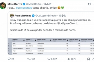目前效力于貝蒂斯的巴爾特拉在社交媒體上轉(zhuǎn)發(fā)了這條動(dòng)態(tài),配文調(diào)侃:“那么…蘇亞雷斯,來貝蒂斯吧,哥們。”