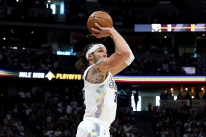 體育資訊10月24日訊 NBA常規(guī)賽,掘金上半場(chǎng)以70-61領(lǐng)先勇士。