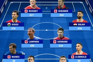 中場:吉格斯(276球)、蘭帕德(295球)、杰拉德(218球)、薩拉赫(278球)