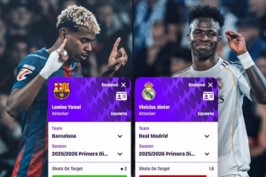 體育資訊10月25日訊 皇馬和巴薩將在本輪西甲焦點對決,數(shù)據(jù)機(jī)構(gòu)squakwa對比了亞馬爾與維尼修斯在2025/26賽季西甲關(guān)鍵數(shù)據(jù)(加粗項為優(yōu)勢數(shù)據(jù)):