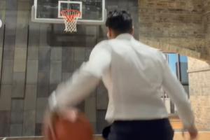 體育資訊10月26日訊 今日,ESPN名記Shams曬出自己在連續(xù)工作14個小時之后西裝革履運球&投籃的視頻。