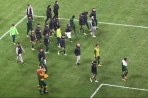 博主“斯文已逝”寫道:國安賽后謝場環(huán)節(jié)應該是有人提前回更衣室了,頂著全場噓聲和“丟人現(xiàn)眼”的喊聲走了一圈,另一邊海牛功臣薩里奇獲得大片掌聲。