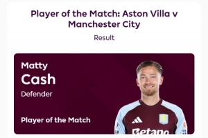 據(jù)賽后英超官方的消息,打進制勝進球的卡什當(dāng)選此役全場最佳球員,在評選中獲得58%的投票。