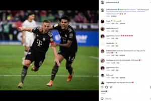 本場比賽基米希打入賽季首球,他也在社媒曬出慶祝照,配文調(diào)侃道:“凱恩小心了,我要追上你了!”