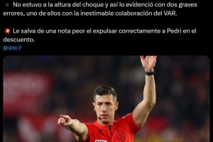 西媒Archivo VAR在賽后為本場(chǎng)比賽主裁判格拉多打分:“災(zāi)難級(jí)表現(xiàn),2.5分?!?/p>