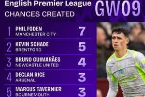 體育資訊10月28日訊 英超第9輪戰(zhàn)罷,據(jù)Squawka數(shù)據(jù)統(tǒng)計(jì),福登是本輪創(chuàng)造機(jī)會(huì)次數(shù)最多的球員,共計(jì)7次。